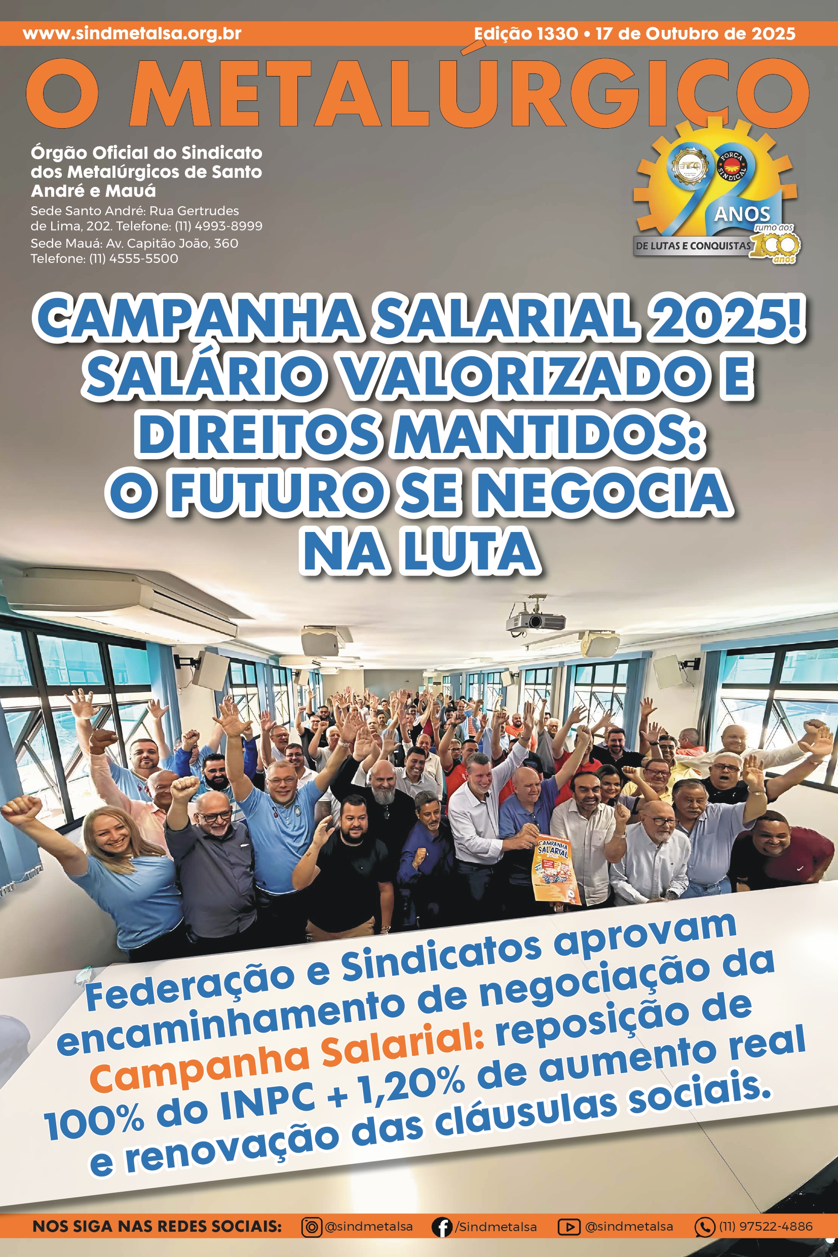 Com enorme satisfação e alegria, comemoramos os 92 anos de história do Sindicato dos Metalúrgicos de Santo André e Mauá neste 23 de setembro. Não se trata apenas da celebração de uma data, mas da reafirmação de uma trajetória que, quase um século depois, segue marcada por lutas e conquistas, coragem e resistência. Desde a […]