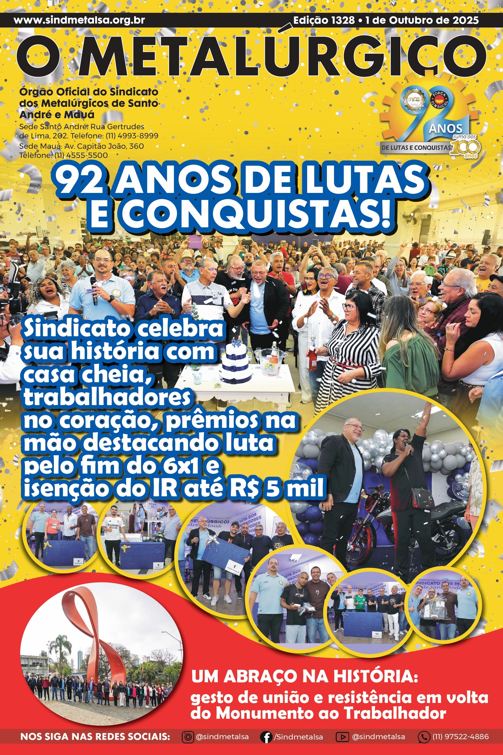 Com enorme satisfação e alegria, comemoramos os 92 anos de história do Sindicato dos Metalúrgicos de Santo André e Mauá neste 23 de setembro. Não se trata apenas da celebração de uma data, mas da reafirmação de uma trajetória que, quase um século depois, segue marcada por lutas e conquistas, coragem e resistência. Desde a […]